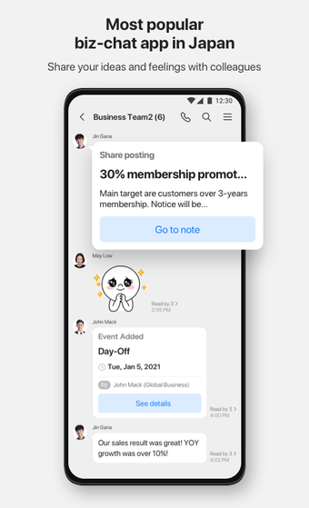 ด้วย LINE WORKS คนที่มีอายุและประสบการณ์ด้านไอทีที่แตกต่างกันสามารถสื่อสารได้ราบรื่นมากขึ้น ไม่ว่าจะเป็นขนาดของบริษัท ประเภทของอุตสาหกรรม หรือประเภทของงาน! LINE WORKS ใช้ง่ายและมีคุณสมบัติมากมายที่ทำให้เป็นเครื่องมือที่ยอดเยี่ยมสำหรับธุรกิจ
